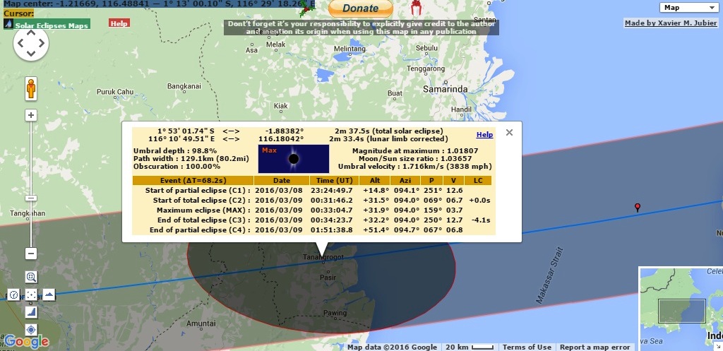 dimana garis totalitas gerhana akan menyapu beberapa wilayah di Indonesia. Ada 10